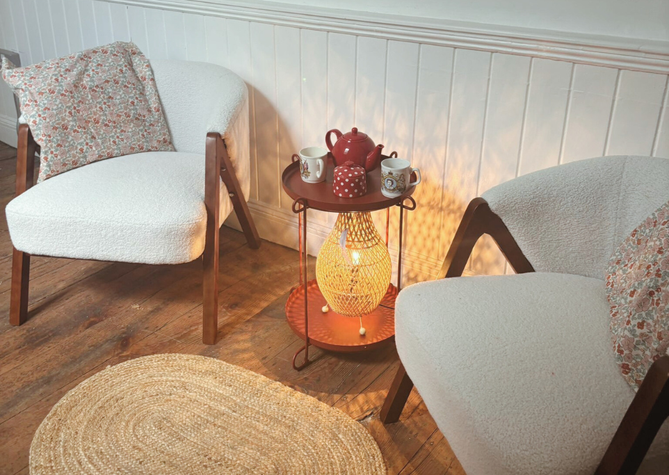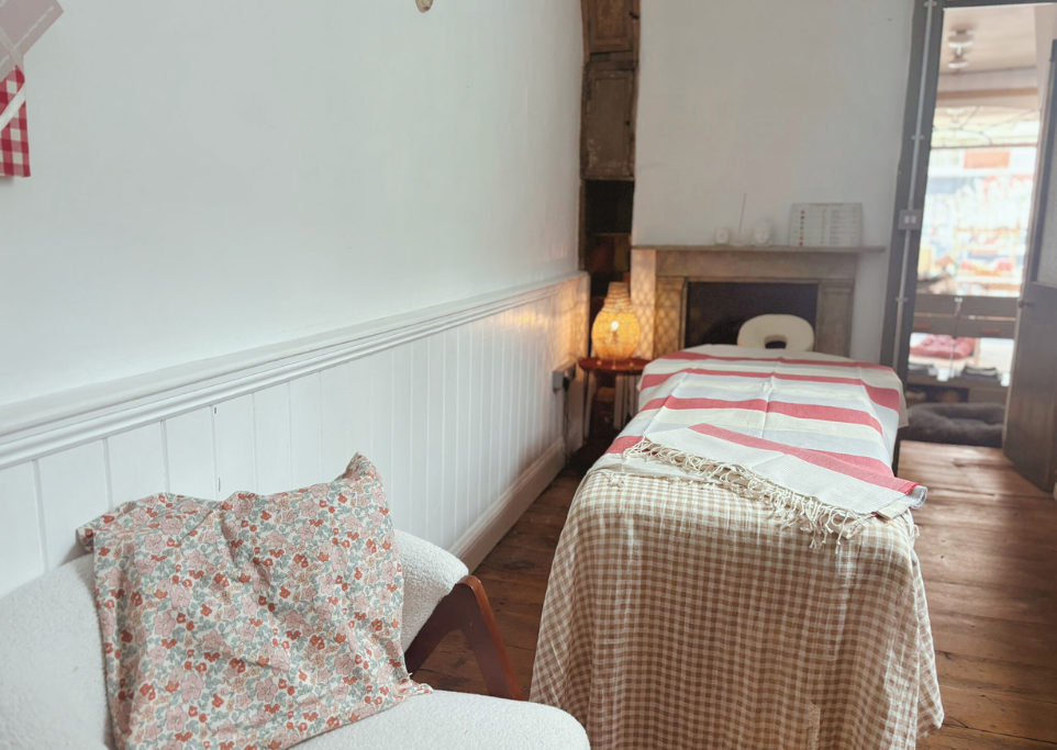 Our therapy room provides a tranquil space for holistic therapists to connect with clients in a nurturing environment.